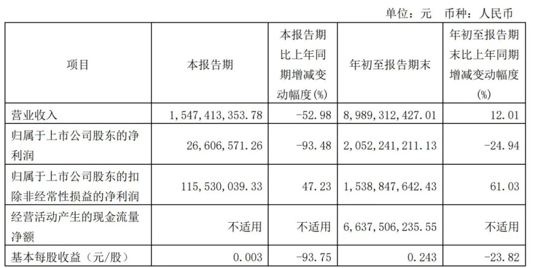 2021年第三季度,新湖中寶的營(yíng)收為15.47億元,同比下滑52.98%,歸屬于上市公司股東的凈利潤(rùn)下降更厲害,達(dá)到93.48%,為2660.7萬元,扣非后的凈利潤(rùn)稍微好一些,上升了47.23%,為1.16億元。