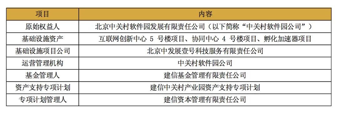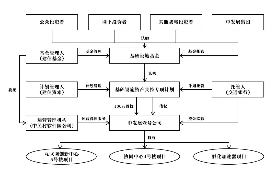 此外,項目公司向交通銀行申請4.61億元固定資產貸款,加上專項計劃給項目公司發放的貸款,共計20.02億元,用于償還項目公司對中關村發展集團股份有限公司(以下簡稱“中發展集團”)原負有的債務。項目公司(基礎設施資產)的原始權益人為中關村軟件園公司,控股股東為中發展集團。