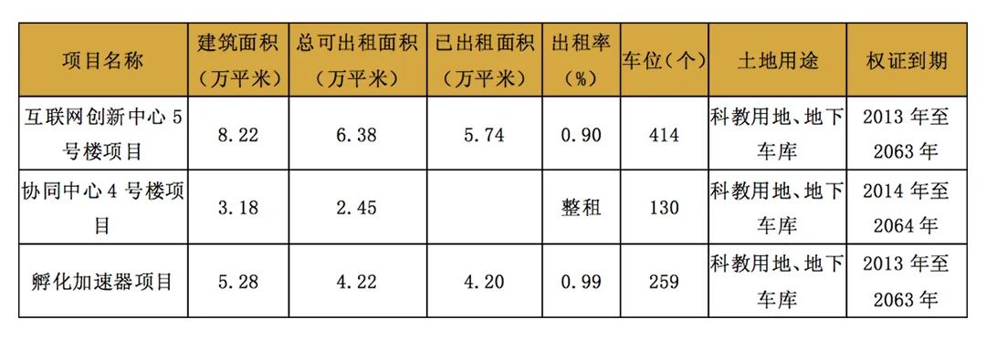 表12 中關村軟件園公司持有園區資產情況