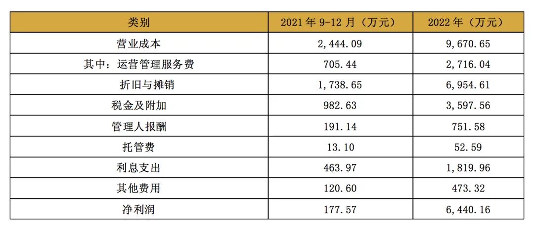 上市后,標的基礎設施項目委托中關村軟件園公司運營管理,項目運營成本費用主要包括運營服務費用、園區物業服務費用、停車管理費用、資本性支出、稅金及附加、管理人報酬等。