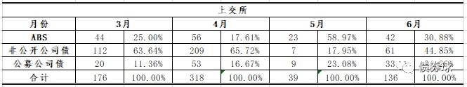 非公開雖然受新規(guī)沖擊最厲害,但其在交易所產(chǎn)品中的占比依然是最大的一塊。ABS,從六月數(shù)據(jù)來看,已經(jīng)從新規(guī)中恢復過來,結(jié)合其第二大品種的地位,值得給予更多關(guān)注。至于公募公司債,筆者以為更適合做錦上添花的品種。