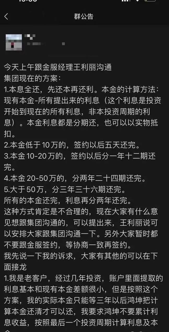 鴻坤金服清退方案預(yù)計星期四出正式的方案,會通知到每一個投資人,應(yīng)該是在APP上會公布