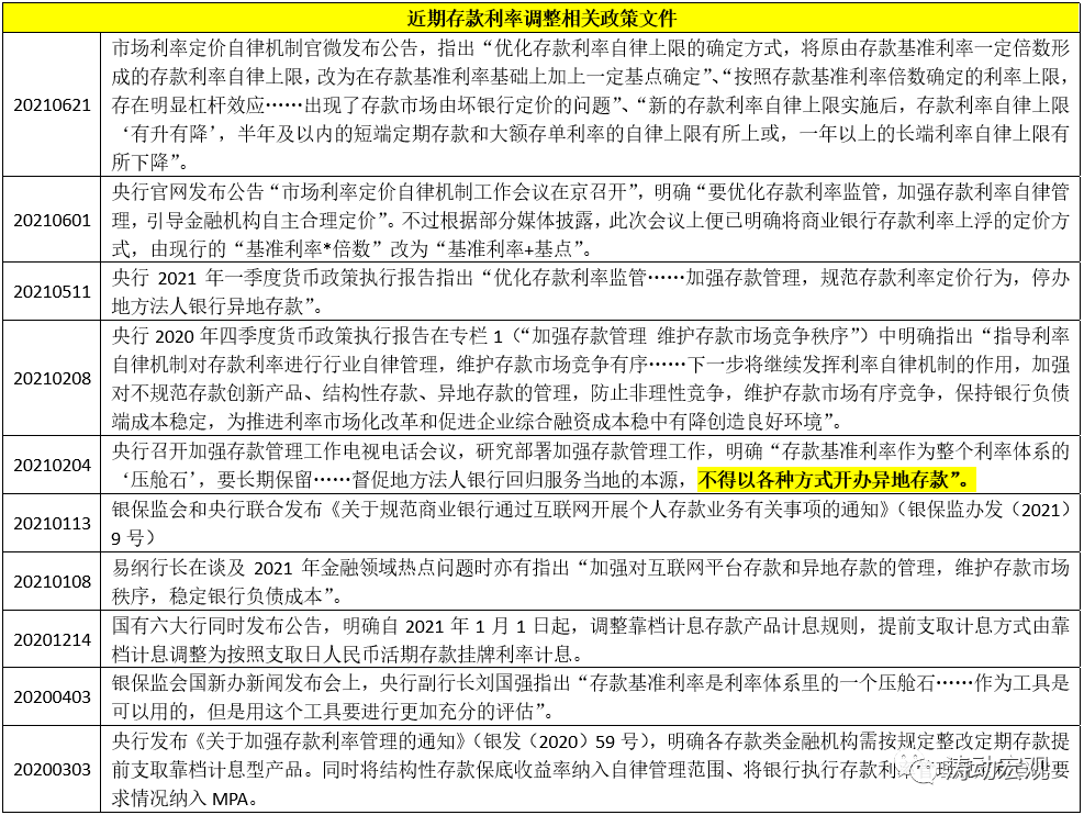 3、之前對結構性存款、智能存款、異地存款以及對貨基與類貨基(現金管理類產品)的整頓,是存款利率報價方式調整的前奏,與存款利率報價方式調整在政策內涵與導向上是一致的。這些高成本存款或類存款被禁或被限一定程度上緩解了存款利率市場化的壓力。