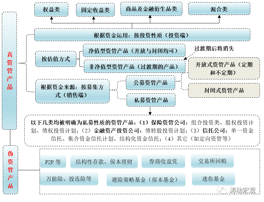 例如,按資金來源、根據募集方式將資管產品分為公募和私募兩類,分別對應社會公眾和合格投資者兩類群體,以體現投資者適當性管理要求。