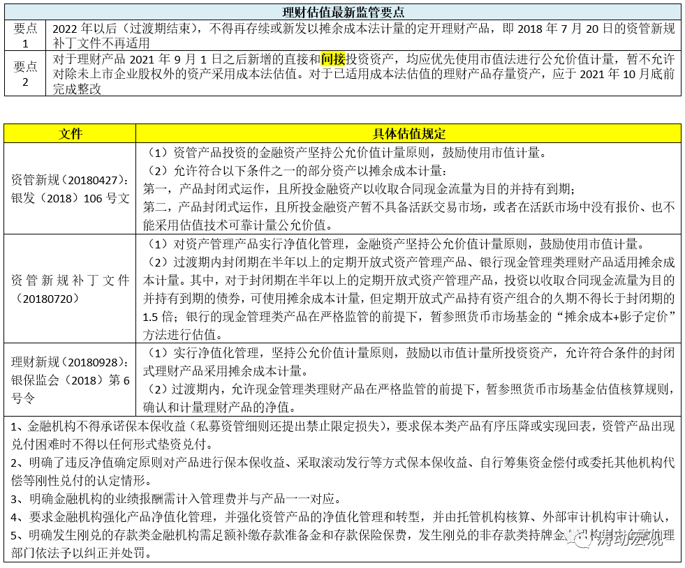 2、2021年8月24日,銀保監會召集國有六大行開會,部署攤余成本法理財產品的后續安排,即2022年開始資管產品均將不能再使用攤余成本法估值。