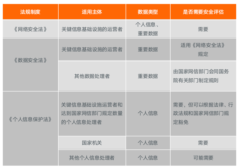 表:不同法規制度中對于數據出境安全評估的要求