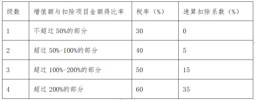 =增值額×適用稅率-扣除項目金額×速算扣除系數(shù)