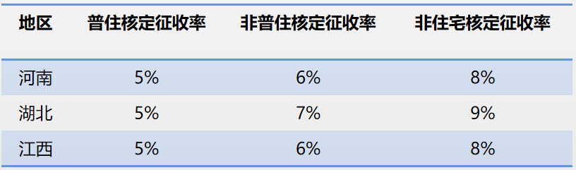 核定征收率原則上不得低于5%,各省級稅務(wù)機(jī)關(guān)結(jié)合本地實際,區(qū)分不同房地產(chǎn)類型制定核定征收率。
