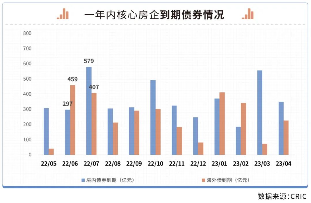 據CAIC統計,2022年三季度,200家核心房企境內外債券合計到期規模約2135億元,其中,民企約有1327億元債券到期,占比超6成。7月,房企單月到期債券規模達986億元,為年內單月最高。