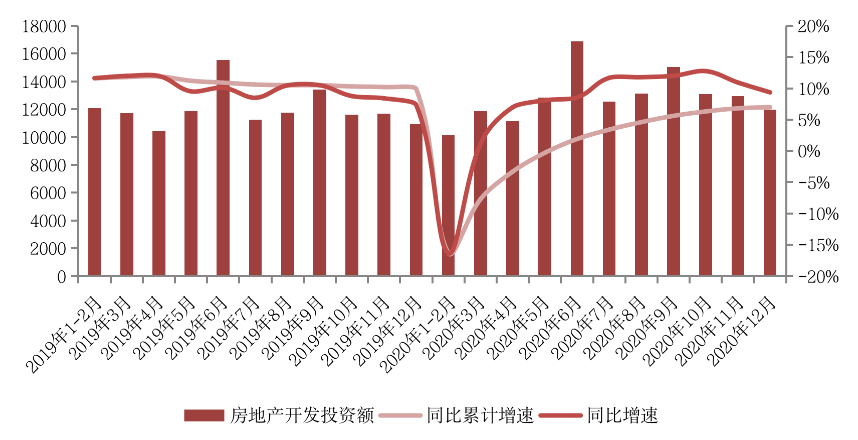 值得注意的是,受融資端“三條紅線”的影響,房地產(chǎn)開發(fā)投資額單月同比增速已連續(xù)3個(gè)月收窄,至12月已降至10%以下,后續(xù)增長勁頭略有乏力。