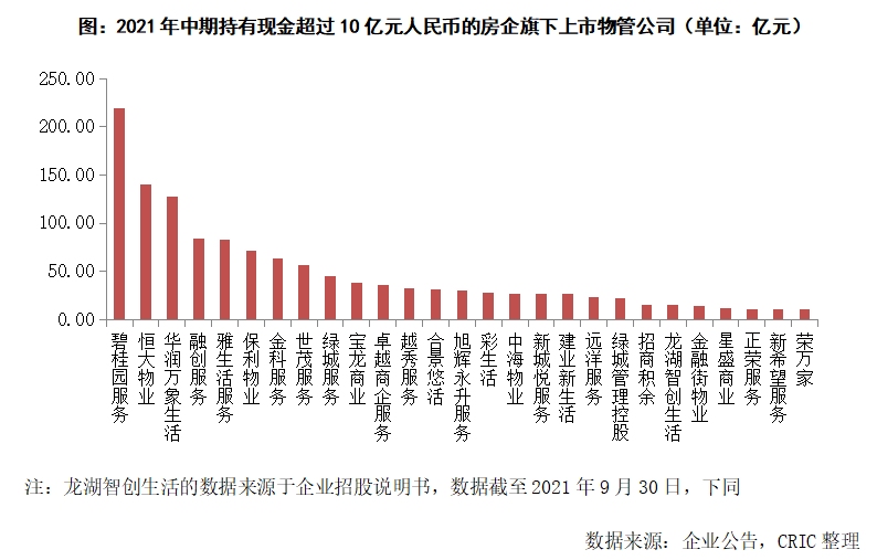 華潤萬象生活在此時開始大舉并購,究其原因,一方面是因為企業(yè)擁有著充足的現(xiàn)金儲備。自從在2020年底完成了IPO成功募集120億港元之后,華潤萬象生活并沒有進行過大規(guī)模的投資,因此截至2021年中仍擁有著近128億元的持有現(xiàn)金,在各家已上市的房企旗下物管公司中排名第三。