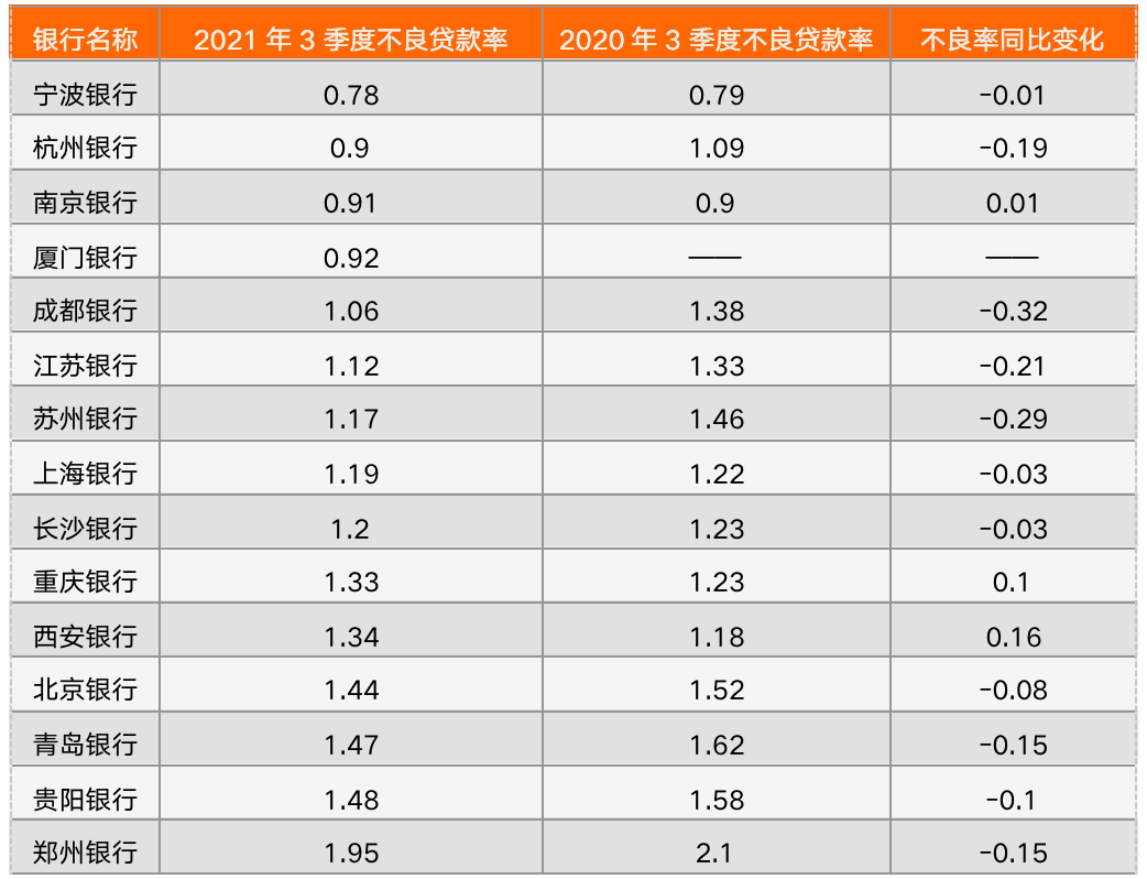 尤其是在資產(chǎn)質(zhì)量方面,2021年前三季度寧波銀行的不良率僅為0.78%,較上年同期的0.79%,進一步下降了0.01個百分點。由此可見,該行將風險防控作為經(jīng)營首位,始終遵循著“控制風險就是減少成本”的風控理念,嚴格把控信貸風險發(fā)生的每個環(huán)節(jié)。零壹智庫對比發(fā)現(xiàn),寧波銀行憑借著0.78%的超低不良率,不僅在15家A股上市城商行之中排名第一,甚至在38家A股上市銀行之中也排在首位,超越了國有大行與全國性股份制銀行,足以說明其資產(chǎn)質(zhì)量處于行業(yè)領先水平。