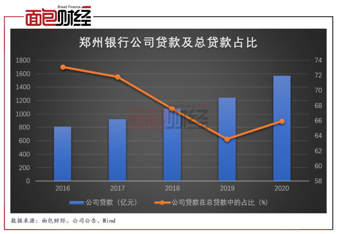 年報顯示,鄭州銀行的公司貸款主要圍繞“商貿金融、小微金融、市民金融”三大特色業務,截至2020年末,該行公司貸款總額為1569.54億元,占該行貸款總額的65.96%,較上年末增加人民幣323.88億元,增幅為26%。