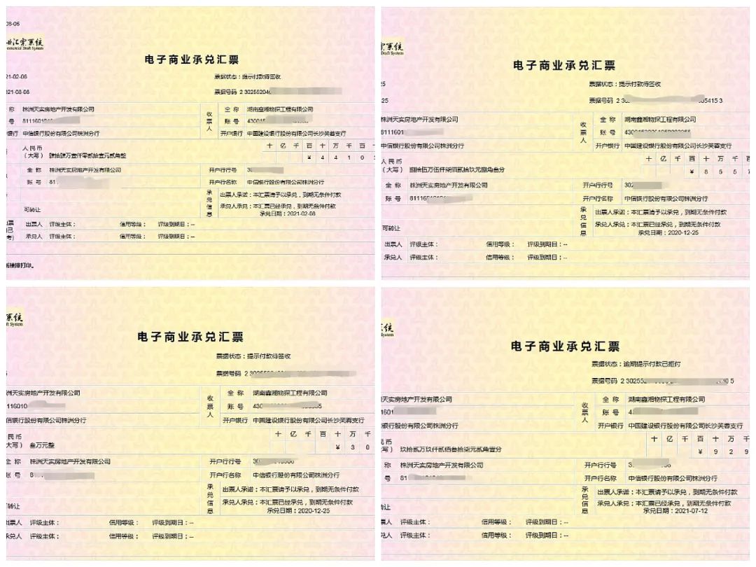 張宇萬萬沒想到,聊過展期、談了抵押,實地地產給他所在鑫湘物探工程公司的4張商票,從去年到今天,還是一分錢都沒到賬。其公司虧損本金就有224萬,而所涉的株洲實地劍蘭郡一個項目,未兌付商票則有約3000萬。