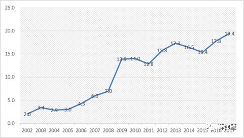就我國的社會融資規模來講,2009年也是“起飛之年”,在此之前和在此之后,社會融資規模完全是在兩條截然不同的路徑之上(見圖6),計量經濟學中有個詞叫“斷點”,很是傳神。按理說,如果沒有特別的事件,正常的社會融資規模增速應該相對平滑。在2009年之后,多了那么多社融,而且,上去之后,就再也沒有下來過。2011年,該指標階段性下行,2012-2013年又上行,2014-2015年下行,2016-2017年又開始上行,但都是在高位窄幅波動。