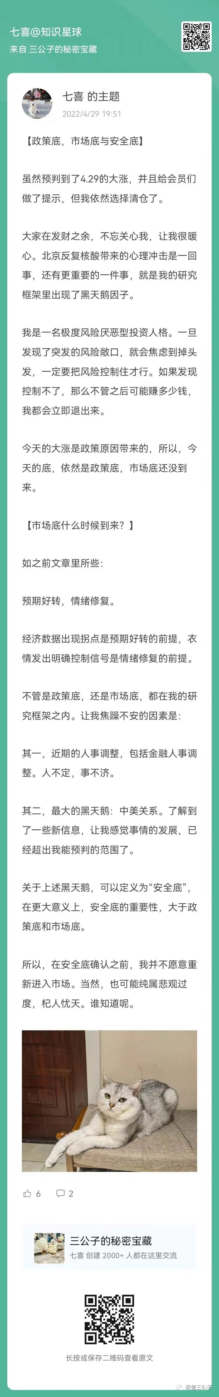 4月29號大漲,我卻完成了清倉,也在星球里陳述了判斷邏輯。當然,也被嘲笑了。