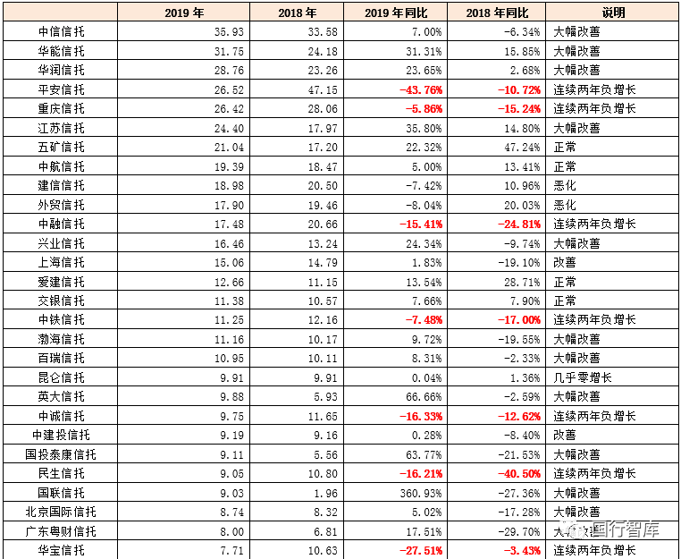 (八)61家信托公司2019年凈利潤對比:3家出現虧損、20家出現下降