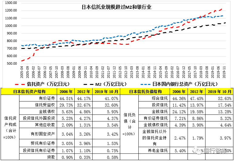 (一)國外情況簡述:起于英美、成長于日本,日本信托資產超過190萬億人民幣(超過M2和銀行業)