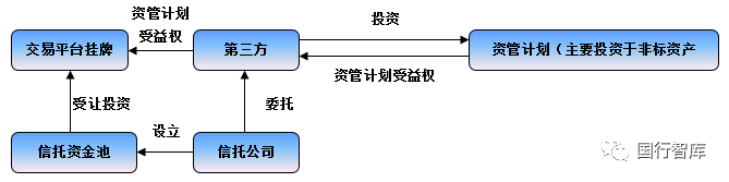 二是商業銀行直接將信貸資產(收益權)委托給信托公司成立財產權信托,并通過掛牌、證券化等形式由理財產品或第三方機構對接摘牌,從而達到非標轉標和信貸資產出表的目的。