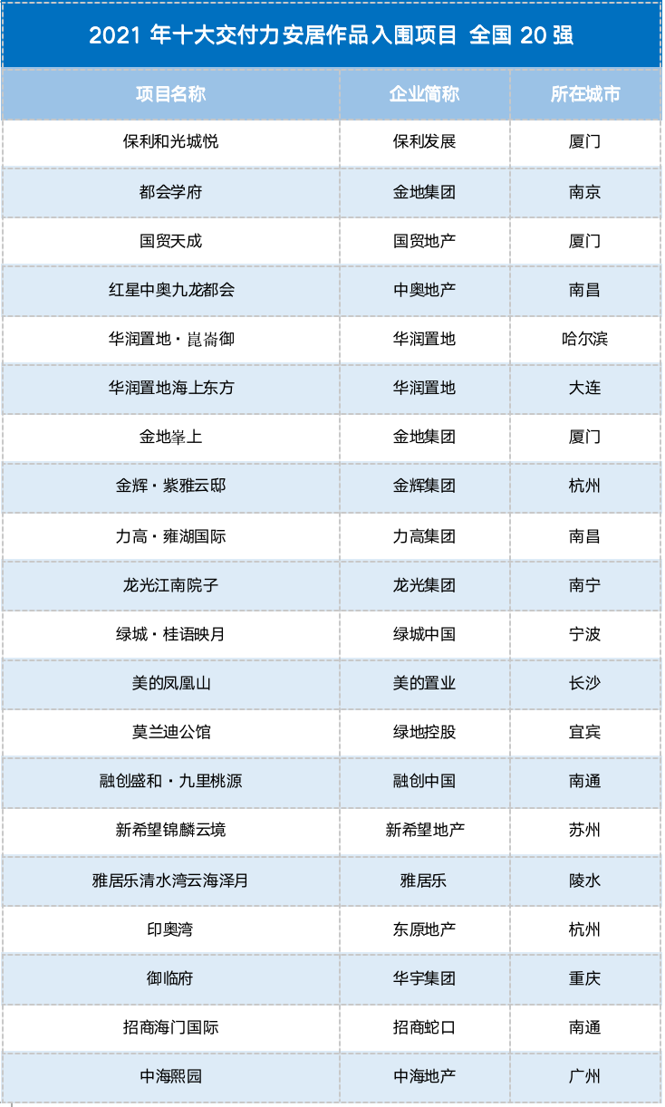 2.參評項目的統(tǒng)計范圍為首次交付時間在2021年度的項目;
