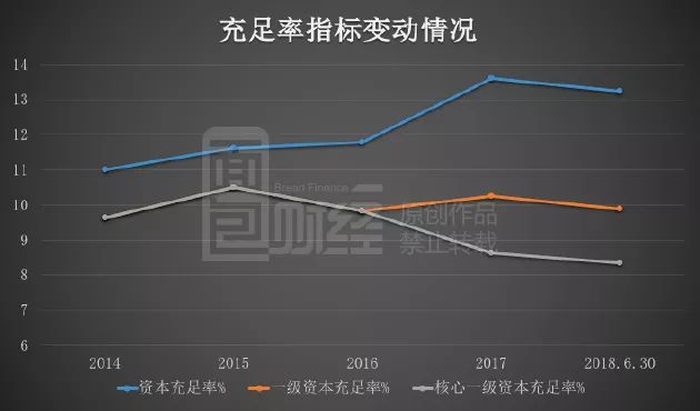從近五年的數(shù)據(jù)來看,重慶銀行的資本充足率由2014年的11%提升至2017年的13.6%, 2018年6月底資本充足率小幅下滑至13.25%,仍高于監(jiān)管要求。