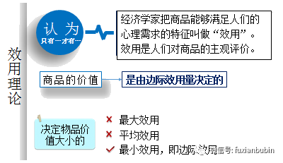 綜上,效用理論的核心是商品的價值是由人民對商品效用上的主觀評價決定的。在效用理論中,效用是指商品或勞務滿足人的欲望的能力或者是指消費者在消費商品后所感受到的滿足程度。商品的價值取決于邊際效用量,而邊際效用是指每增加購買一單位的某種商品給消費者帶來的滿足程度的增加量,或稱總效用的變化量,邊際效用的大小與欲望強弱呈正比,即存在邊際效用的遞減規律。效用理論的前提是價值形成要有兩個基礎,即有用性和稀缺性。