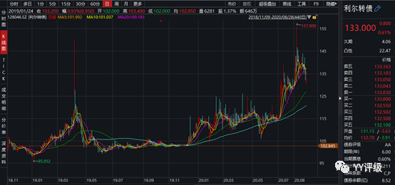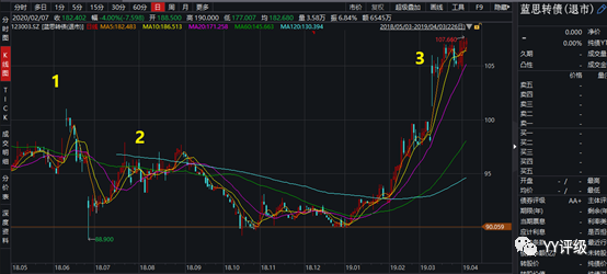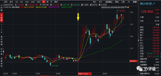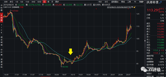 案例:較典型的案例是大族轉(zhuǎn)債,公司是國內(nèi)激光設(shè)備的頭部企業(yè),屬于電子板塊,彈性足夠大,雖然轉(zhuǎn)股價值長期在100元以下較深的位置,但2020年初轉(zhuǎn)債仍能漲到120以上。