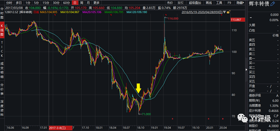案例:2018年中部分資質(zhì)較弱的轉(zhuǎn)債面臨信用風(fēng)險的質(zhì)疑,輝豐的價格到過70附近,洪濤的價格到過80附近,這兩家公司當(dāng)年業(yè)績大概率虧損,但實際償債壓力并不大(除轉(zhuǎn)債外其他剛性債務(wù)很少),ST風(fēng)險也是1年多以后事,因此在相當(dāng)長的時間內(nèi)是沒有實質(zhì)信用風(fēng)險的,當(dāng)時擇機介入的投資者很快就獲得了信用擔(dān)憂修復(fù)的回報。