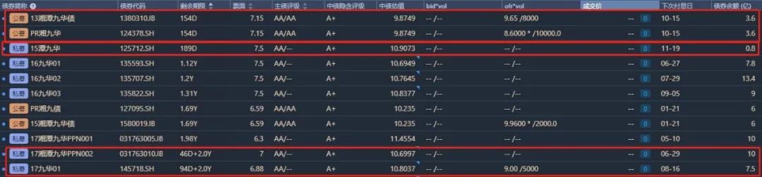 目前九華流通中債券如下,對九華有興趣的老鐵們今年可以重點關注圖中劃紅框的個券。