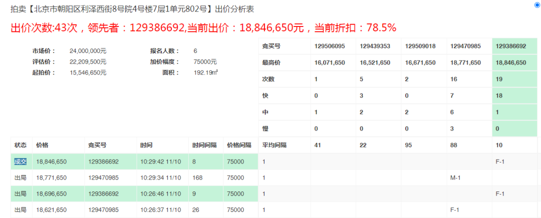 最終本房經(jīng)過了47輪出價,次延時36之后,順利拍出,最終的成交價與市場價也相差無幾,果然是居住用房除了價格之外,還要注重品質(zhì),畢竟誰還不是個精致的競買人呢?