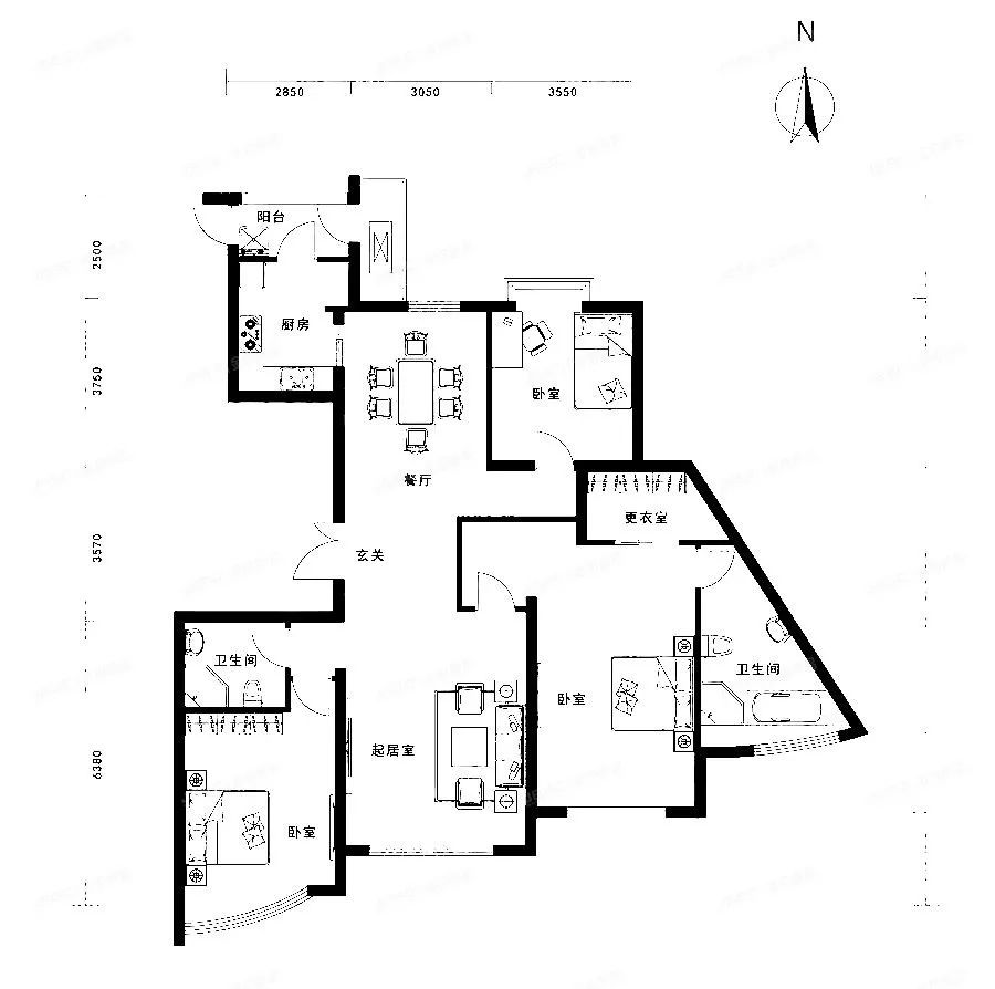 東湖灣二期三居室戶型圖