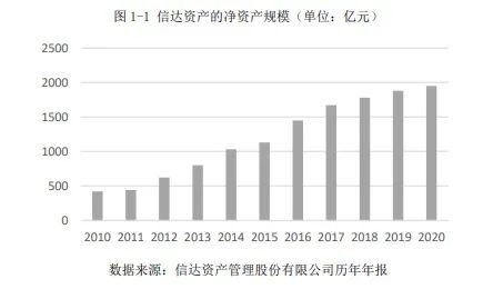 圖1-1顯示,信達資管成立時凈資產(chǎn)為100億,經(jīng)十年發(fā)展至2010年凈資產(chǎn)為425億,至2020年增長至1950億;信達作為樣本反映了四大資管發(fā)展的三個階段:1是政策性資產(chǎn)包階段凈資產(chǎn)穩(wěn)步小幅增長;2是全面商業(yè)化后凈資產(chǎn)快速發(fā)展;3是2018年“回歸主業(yè)”后凈資產(chǎn)增長大幅減緩。