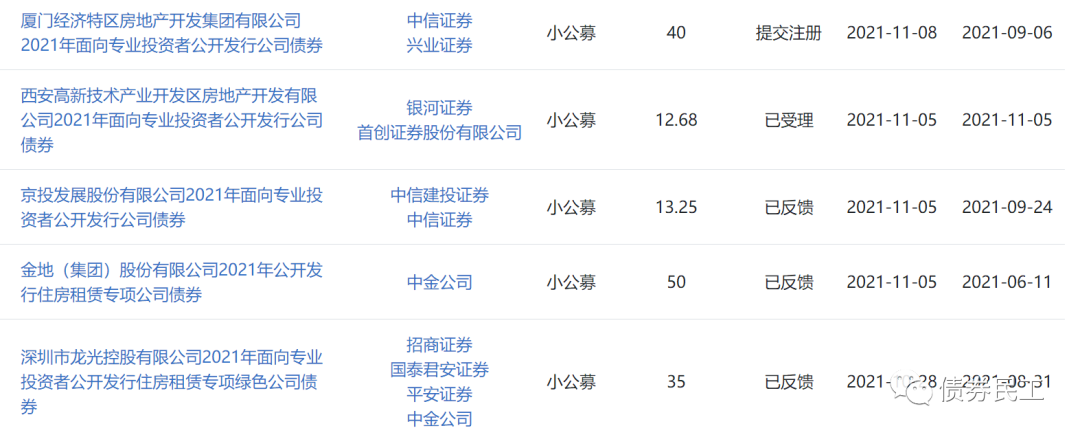 不只是在交易商協會計劃發行債務融資工具,近期多家房地產公司在交易所也在申報公司債券,比如金地(集團)股份有限公司、深圳市龍光控股有限公司和廈門經濟特區房地產開發集團有限公司。