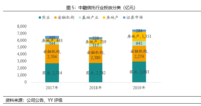 從行業(yè)投向來(lái)看,主要投向?yàn)閷?shí)業(yè)和金融機(jī)構(gòu),至2019年末分別占比39.0%、29.7%。另外,投向房地產(chǎn)行業(yè)的占比2019年也快速提升,達(dá)到17.7%。