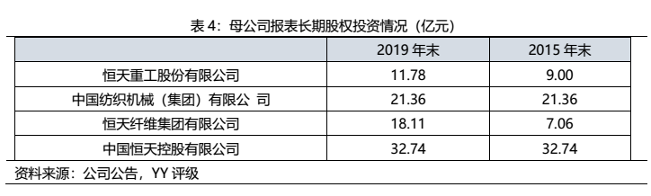 新型纖維材料是公司拓展的新業(yè)務(wù),與紡織機(jī)械業(yè)務(wù)有協(xié)同效應(yīng),但開(kāi)發(fā)成本較大、常規(guī)產(chǎn)品產(chǎn)能過(guò)剩,盈利能力不穩(wěn)定,截至2019年末資產(chǎn)規(guī)模68.0億元,2019年實(shí)現(xiàn)凈利潤(rùn)凈2.4億元;房地產(chǎn)業(yè)務(wù)較為穩(wěn)定,截至2019年末,共有6個(gè)在售房地產(chǎn)項(xiàng)目,截至2020年3月末,共有5塊未開(kāi)發(fā)土地,對(duì)營(yíng)業(yè)收入形成補(bǔ)充;投資業(yè)務(wù)方面,恒天投資主要負(fù)責(zé)為集團(tuán)內(nèi)各子公司進(jìn)行股權(quán)投資業(yè)務(wù),恒天控股為集團(tuán)境外融資及資本運(yùn)作平臺(tái)。
