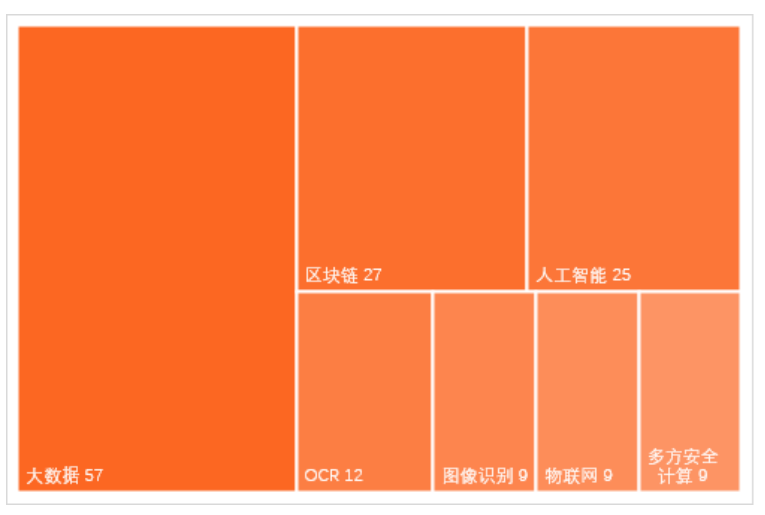 截至2021年6月,三批金融科技創新監管試點應用的核心技術中,使用次數最多的是大數據,共有57項試點涉及該技術,其次是區塊鏈、人工智能和OCR等。同時,試點應用普遍擁有三種以上的核心技術,經零壹智庫不完全統計,三批試點應用共涉及不同種類核心技術288次,可見試點應用擁有創新技術,符合金融科技發展要求,能夠有力推動傳統金融業信息化、安全化。