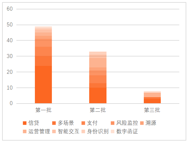 ①擴寬試點深度:以北京為例,應用規模由第一批的6個增加為第二批的11個,由單一的銀行領域拓展到保險領域,涉及的業務場景也更加廣泛。