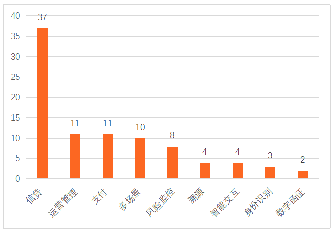 截至2021年6月,三批金融科技創新監管試點應用主要針對的領域有信貸、運營管理、支付、多場景、風險監控、溯源、智能交互、身份識別、數字函證等。其中,有37項試點主要針對信貸領域,占41%。信貸、運營管理、支付、多場景四大領域的試點共有69個,占77%,可見試點應用針對領域的集中度較高,需求主要集中在信貸、運營管理、支付、多場景四大領域。