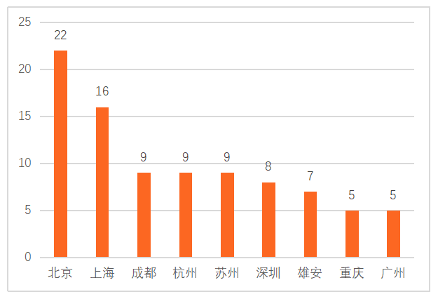 其中,四大一線城市共有51個試點,占57%,而北京和上海試點總和就有38個,占42%,其余擁有試點的城市除雄安外都為新一線城市。