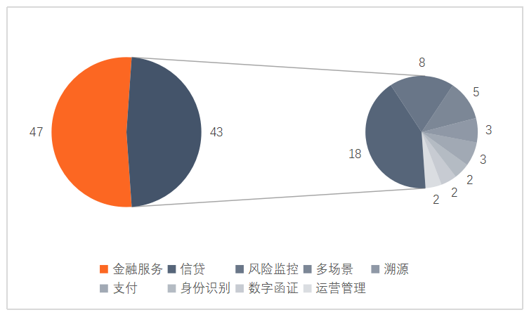 屬于金融服務的金融科技創新監管試點中,主要針對的領域有信貸、運營管理、支付、多場景、智能交互等,偏向于提高金融機構或企業的經營效率,增強客戶黏性等。屬于科技產品的金融科技創新監管試點中,主要針對的領域有信貸、風險監控、多場景、溯源、支付等,偏向于提升金融機構或者企業的風險防控能力,保障資金或者數據的安全。