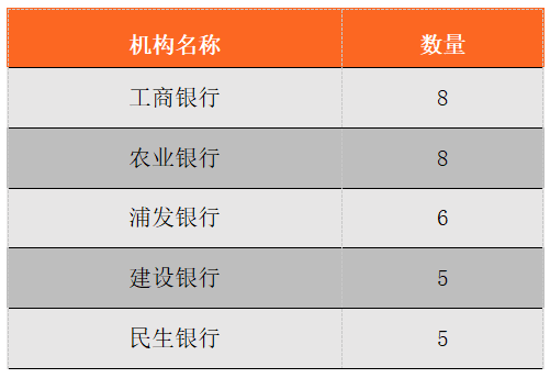 表5:金融機構參與試點數量排名前五名