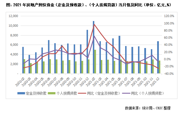 2021年房地產開發資金來源(國內貸款)達23296億元,同比降幅較11月末的10.8%進一步擴到12.7%,企業融資端仍難言回暖。