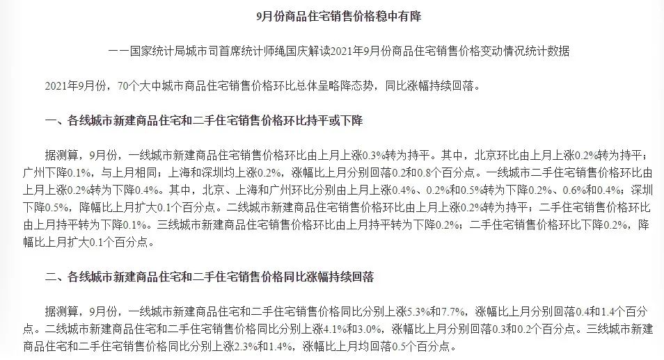 10月20日,我國統計局發布了9月70城房價有關數據。