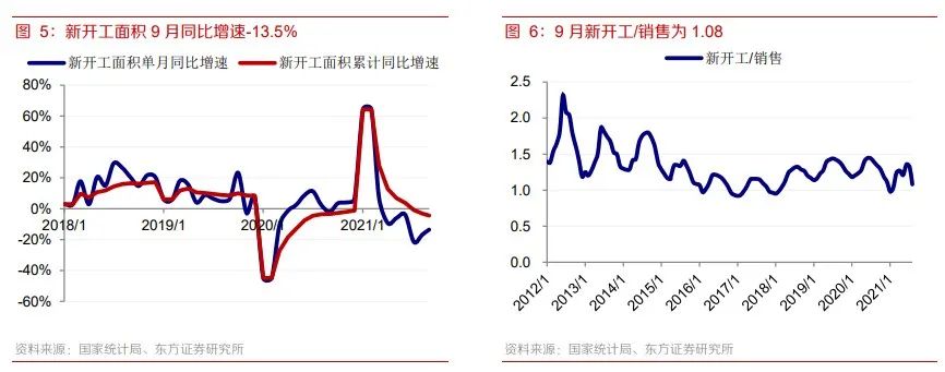 第一,2022年可售的房子面積,可能會有異動。9月房地產新開工面積為17442萬平米,同比下降13.5%,與2019年同期相比,下滑15.2%,累計新開工15.3億平米,同比增速持續下滑。
