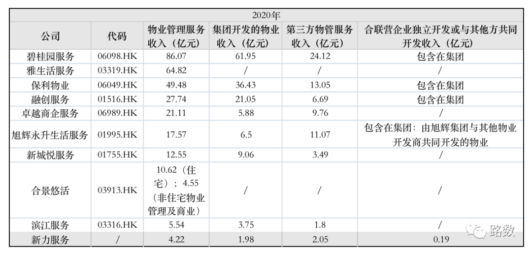 張園林也有自己的物業公司——新力服務。他持有71%股權,高管持有17.82%,用于員工激勵的持股占9.9%。雖然新力服務不屬于上市公司資產,但2020年單物業管理服務一項,來自新力控股集團、新力科技、合聯營企業和其他關聯人士的收入共有2.17億,占51.4%。▼