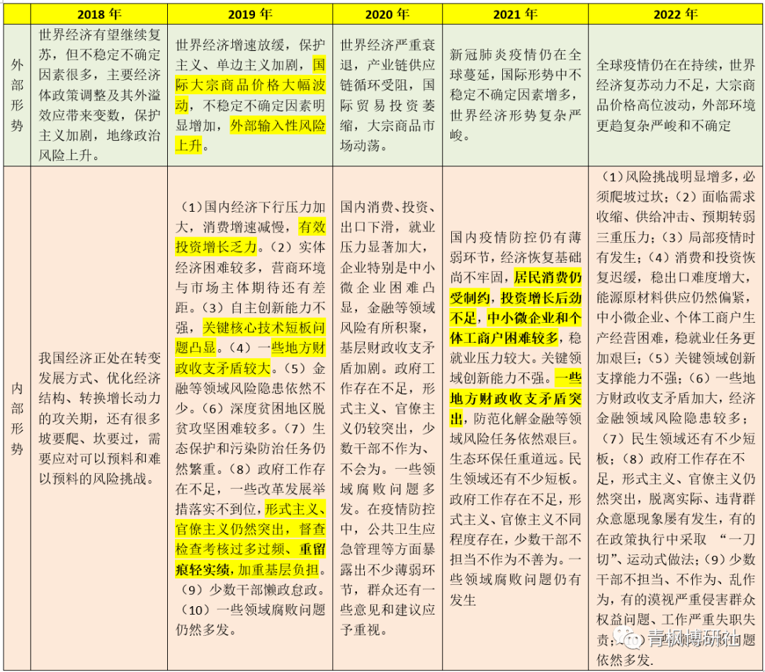 一、要點1:外部形勢看更趨復雜嚴峻和不確定,內部形勢看風險挑戰明顯增多
