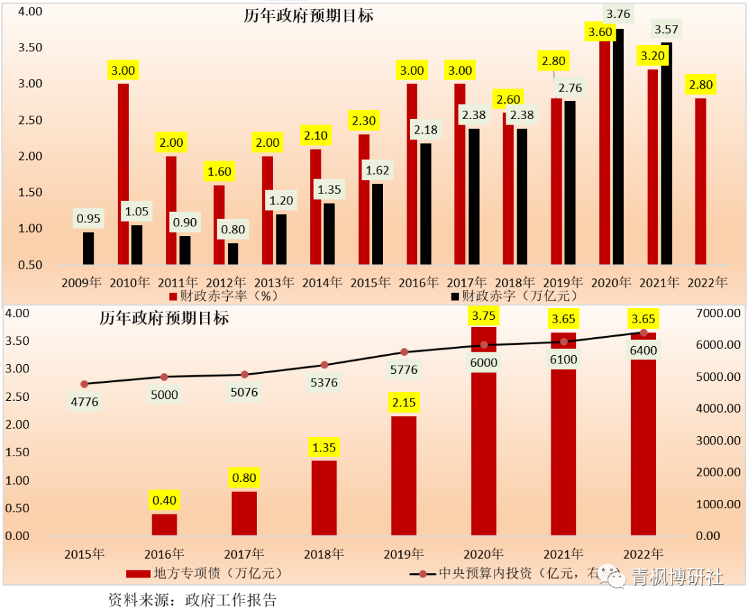 (一)雖然專項債規模沒發生變化,但中央預算內投資規模較2021年大幅增長300億元至6400億元,相對來說比較積極,此舉我們理解意在穩投資以及引導投資,通過中央預算內資金的引導,來推動更多資金加入。