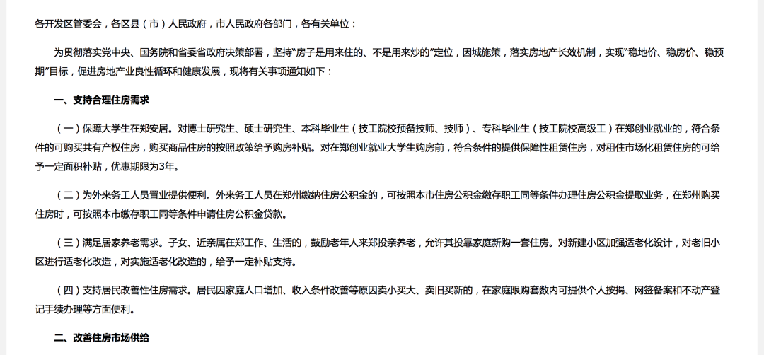 1.有針對(duì)性取消限購,允許部分家庭新購一套住房。對(duì)子女、近親屬在鄭工作、生活的,鼓勵(lì)老年人來鄭投親養(yǎng)老,允許其投靠家庭新購一套住房。