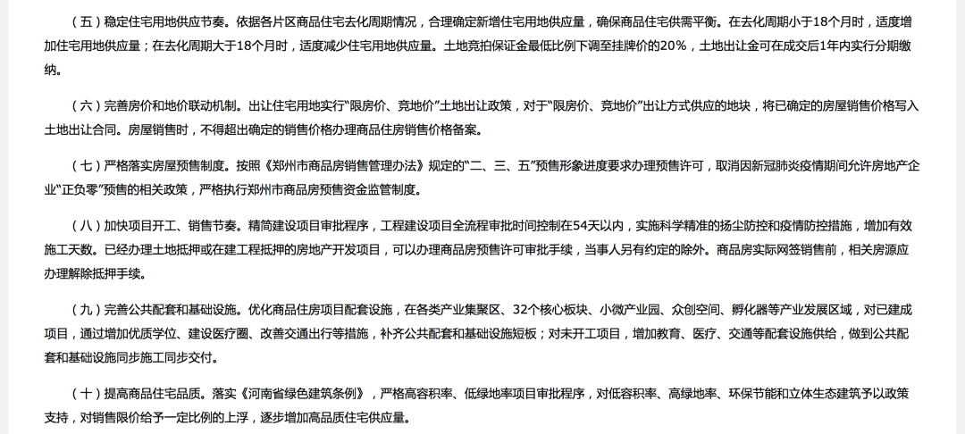 4.減輕主體壓力,調(diào)整土地出讓規(guī)則。土地供給端下調(diào)土地競(jìng)拍保證金最低比例至掛牌價(jià)的20%,土地出讓金可在成交后1年內(nèi)實(shí)行分期繳納。