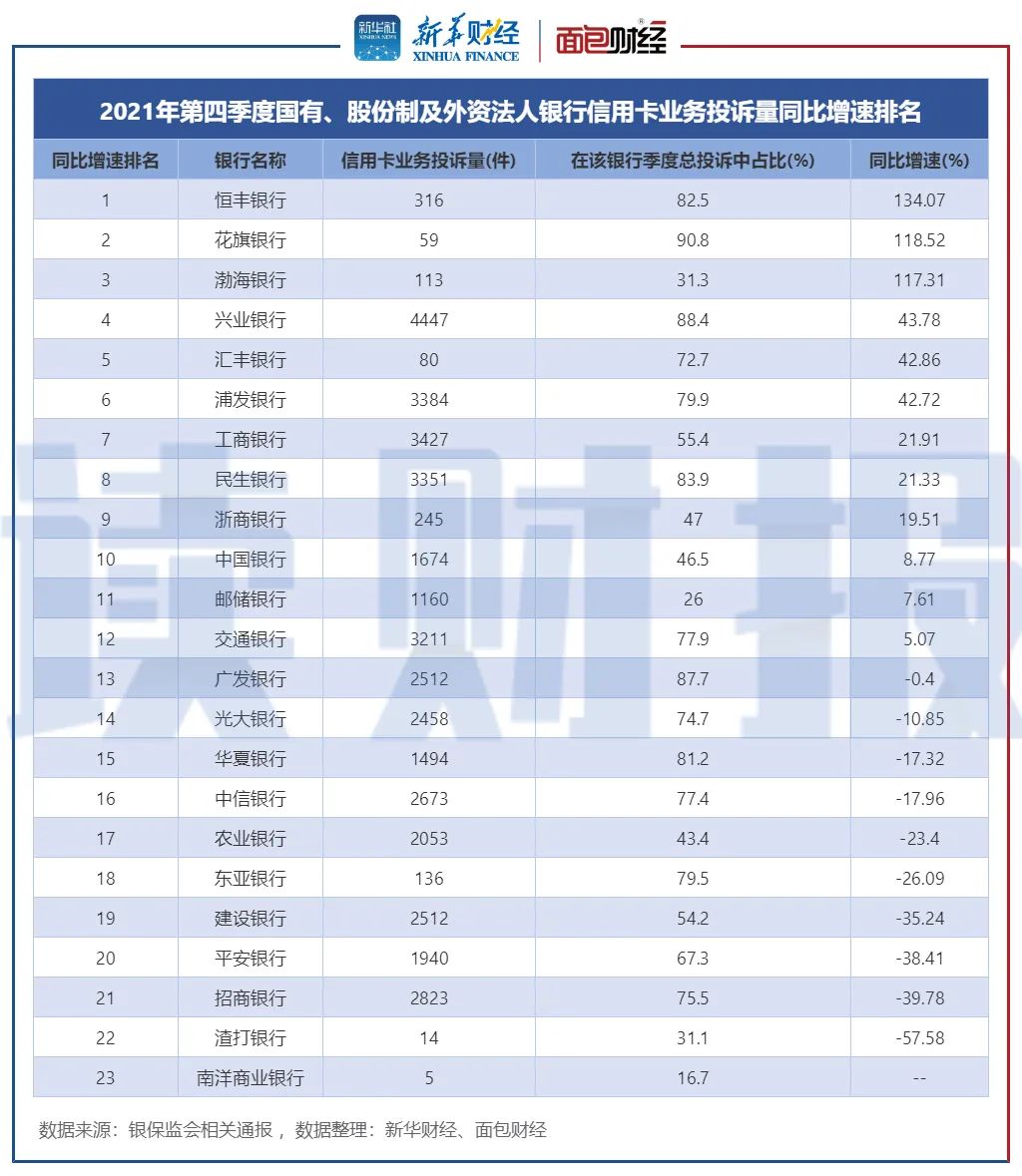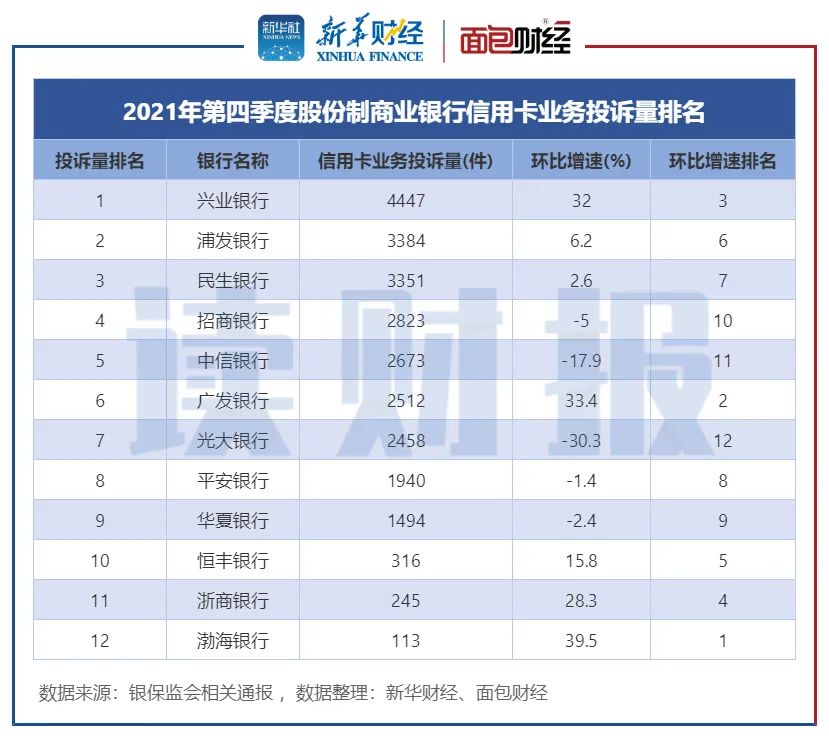 2021年全年,光大銀行、中信銀行、興業(yè)銀行分別位居銀行信用卡業(yè)務(wù)累計(jì)投訴量前三甲。
